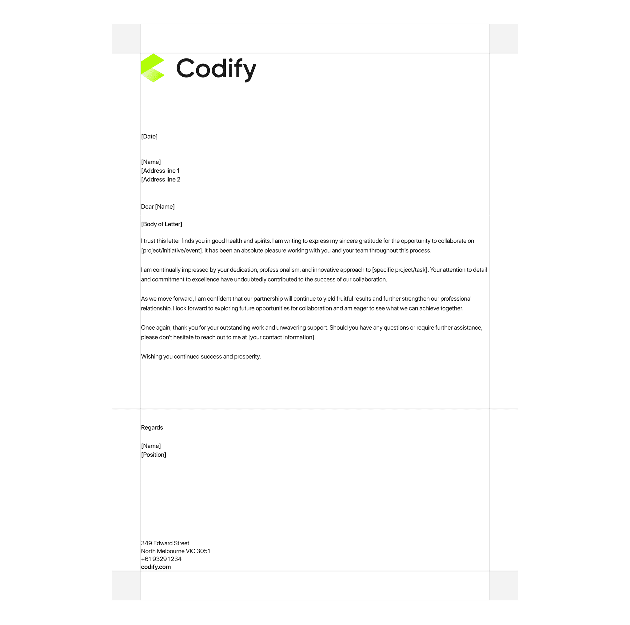 Designed in line with our brand guidelines, our letterhead features our logo, primary colors, and typography to reinforce our brand identity.