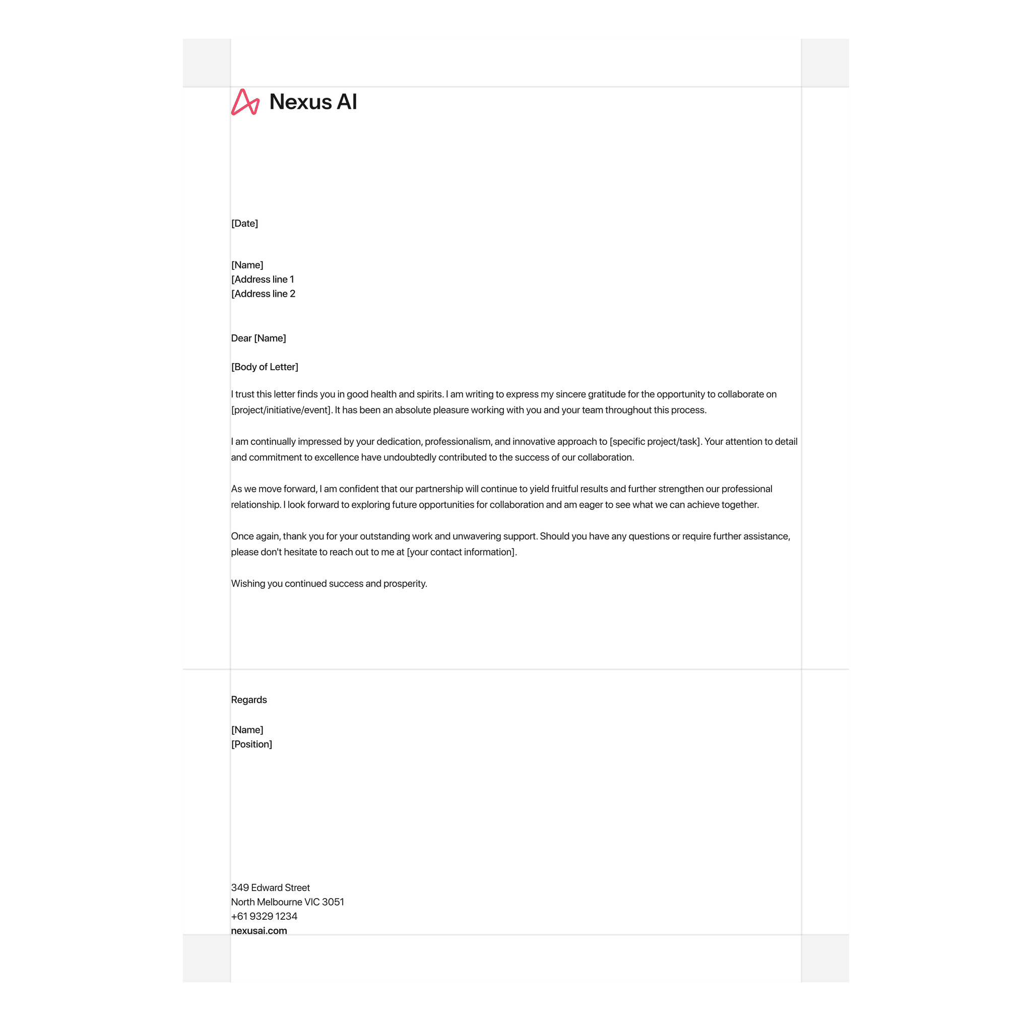 Designed in line with our brand guidelines, our letterhead features our logo, primary colors, and typography to reinforce our brand identity.
