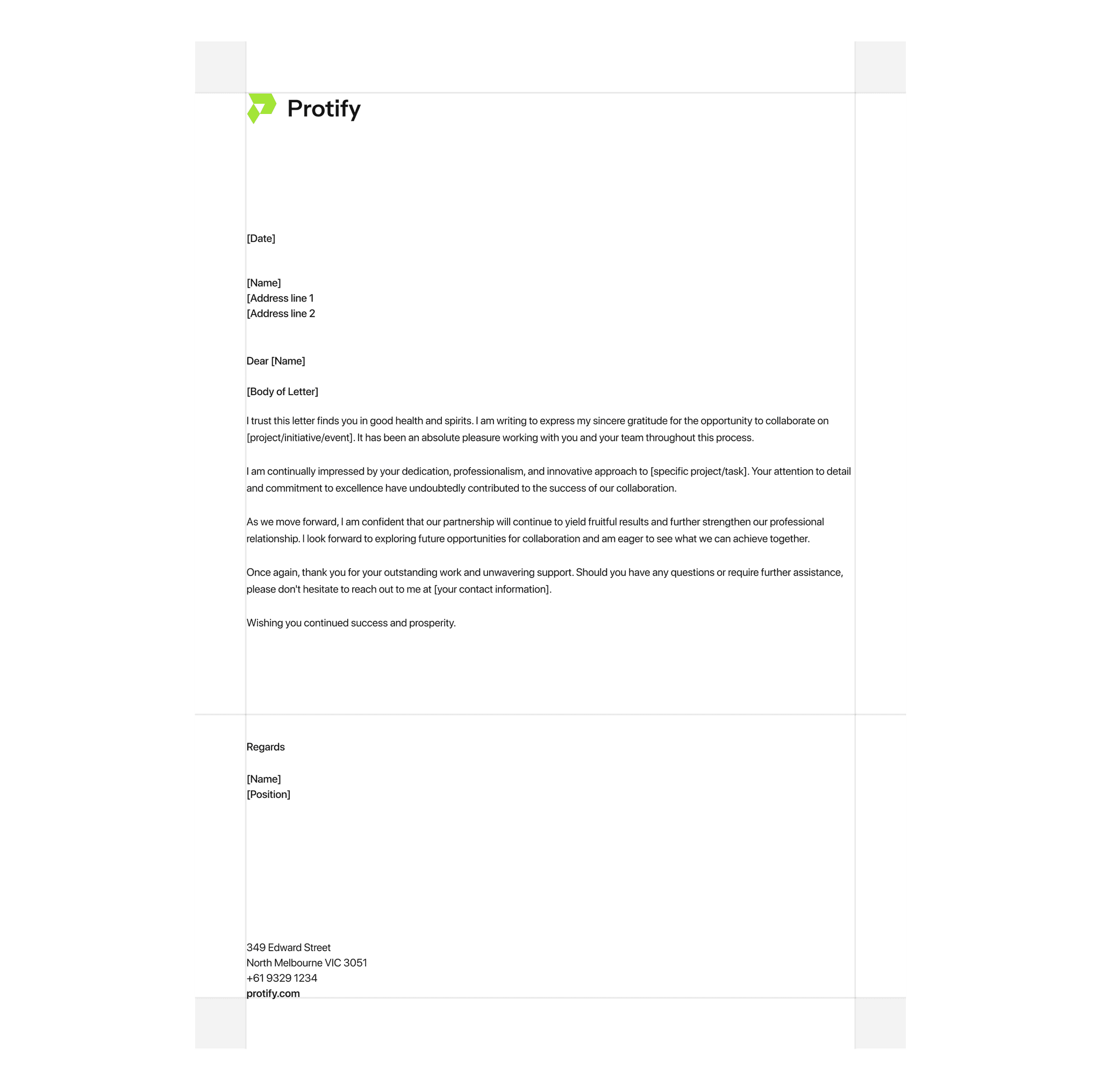 Designed in line with our brand guidelines, our letterhead features our logo, primary colors, and typography to reinforce our brand identity.