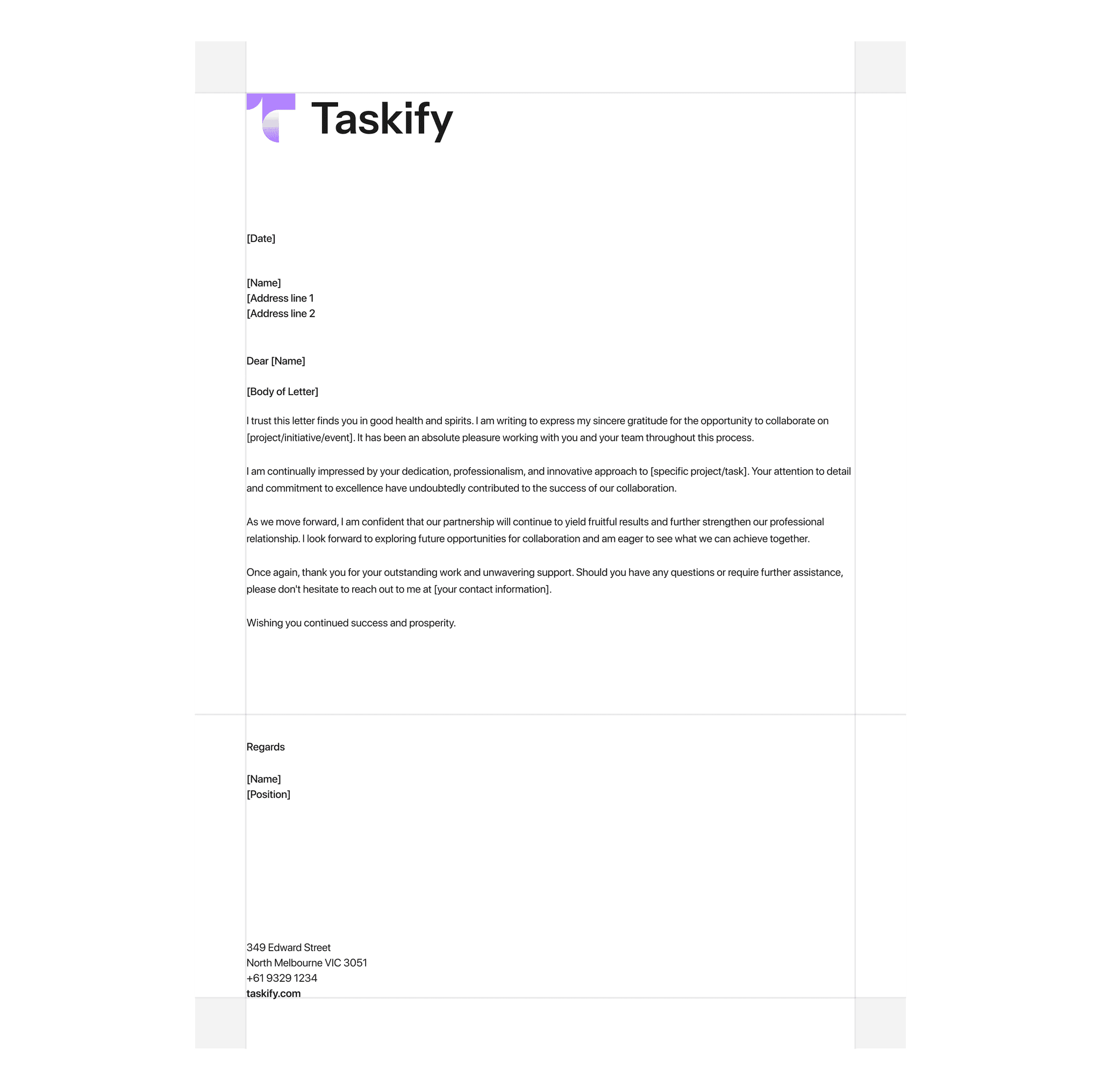Designed in line with our brand guidelines, our letterhead features our logo, primary colors, and typography to reinforce our brand identity.